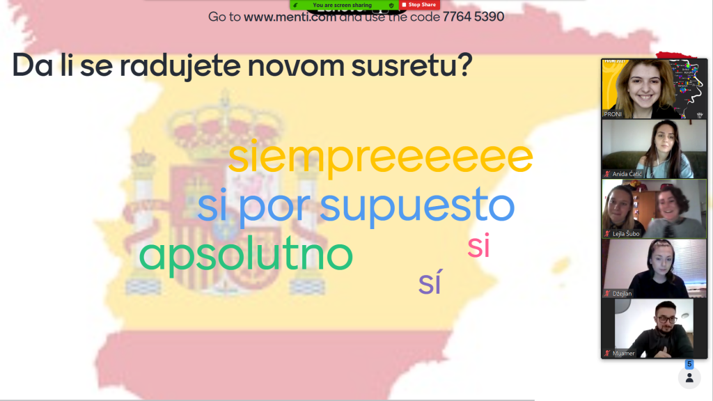 Motivirajuće energije ne fali čak ni kada su u pitanju online susreti. Protekle sedmice takvih je bilo 3 sa mladima iz Sarajeva na kursu španskog jezika ”Hola España!”.
